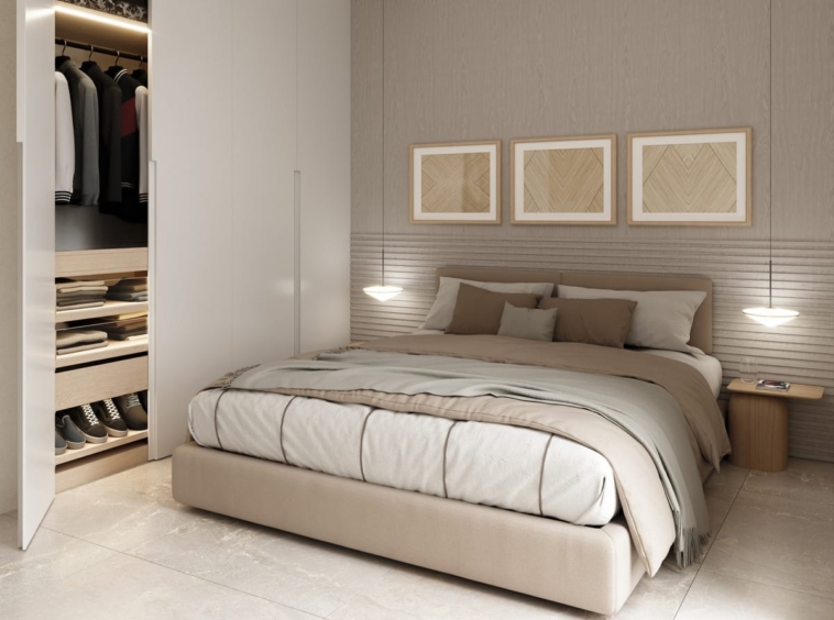 The architecture combines natural materials such as natural stone and wood with sleek lines and warm finishes. Each home has at least 128 m² of living space, a bright living room with large windows, an open kitchen with cooking island and high-quality materials. Upstairs there are three bedrooms and two stylish bathrooms.