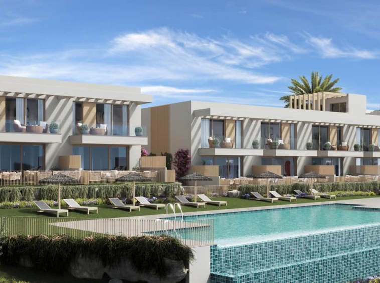 New Development: Prices from €530,000 to €590,000. [Bedrooms: 3] [Bathrooms: 3] [Built size: 128m2 – 131m2].EXCLUSIVE TURNKEY PROJECT Between Estepona and Sotogrande, in the up-and-coming Manilva, lies this development: an exclusive new-build project with 20 modern townhouses. Here you can enjoy breathtaking views of the Mediterranean Sea and the green hinterland every day.