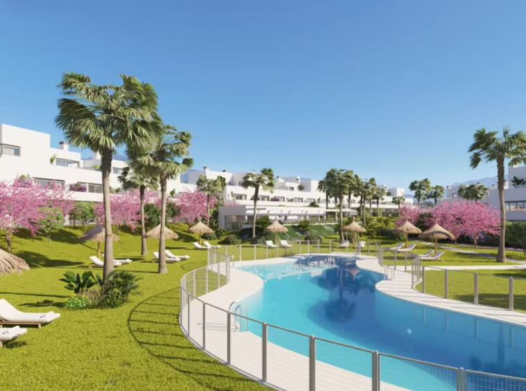 3 Bedroom Penthouse Apartment: Price 511,800 €. [Beds: 3] [Baths: 3] [Built size: 126.00 m2]So Central and yet so PrivateOn your doorstep, this development is located on the New Golden Mile – the coastal area that lies between Estepona and San Pedro Alcántara. A convenient and desirable location, close to everything you could wish for, from sports and beaches to practical amenities such as schools, supermarkets, shopping, dining and entertainment.You are located just a few minutes’ drive of six golf courses, as well as a great choice of other sports, leisure and practical amenities, not to mention beaches, the bustling town of San Pedro, beachside charm of Estepona, the glamour of Puerto Banús and Marbella town and the undeniable rustic appeal of Benahavis.The development lies close to Cancelada, your local village, with its shops, cafés and eateries, as well as conveniences such as a post office and banks – and beyond are the valleys and hills of open, unspoiled countryside, perfect for hiking, mountain biking and cross-country buggy rides. There is a world of experiences at your fingertips, and this development is the ideal spot from which to enjoy them – a centrally located oasis of personal greenery where you can enjoy the ultimate Marbella lifestyle to the full.Modern Design on the New Golden MileStylish and contemporary development of 95 apartments and penthouses, located in a convenient and central location on the New Golden Mile. Whether you are looking for the perfect holiday home or perhaps a new permanent residence you will be spoilt for choice with the vast array of amenities on your doorstep. The New Golden Mile offers everything from golf courses and beaches to schools, entertainment, shopping and dining.A sleek architectural design combined with open-plan interiors and modern amenities creates one of the most attractive new-build offerings on the market today, no stone has been left unturned in the design of Acqua Gardens to create the perfect oasis for modern day living. Some of the details that have been meticulously thought of include top quality finishes, spacious interiors and terraces with sea and mountain views.In addition, the community and communal areas have also been meticulously designed, some of the features on offer include; a secure entrance, private parking and storage, large landscaped gardens, a stylish pool deck and a professionally equipped gymnasium and working/meeting area complete with café.Apartments & PenthousesThe aesthetically appealing low-rise apartment buildings that make up this development offer a variety of sizes, orientations and configurations that ensure every home has a unique and personal feel.Within these main property types there is a choice of sizes and layouts that further increases the range of options and the ability to cater to different tastes and needs – there are also standard and bespoke updates that enable you to personalise your home.Personalised detailingThis development offers a high standard of modern kitchens, bathrooms, cabinetry and technical installations, along with your choice from a range of textures, materials and colour tones. There is also a list of optional features such as modern gas fireplaces, kitchen upgrades and penthouse jacuzzis.Full utilisation of the latest technical infrastructure and amenities to maximise performance and energy-efficiency has been at the forefront in the development these homes, which not only results in more environmentally friendly homes, but also a top energy certification and low utility and maintenance costs.A high standard of build quality combines with striking contemporary architectural styling and fresh open-plan interiors which extend and subsequently merge in to the spacious terraces with views of the gardens, mountains and the nearby sea.A Lifestyle CommunityIt has been designed to provide a private setting and sense of community, with properties overlooking the beautifully manicured landscaped gardens, filled with colour and shaded areas and far reaching views of both mountains and the sea.Las instalaciones• Private and secure access• Private covered parking• Individual storage rooms• Community paths with attractive design• Large garden areas• Swimming pool and solarium area• Professional gymnasium• Meeting space with Wi-FiSecure gated entrances offer peace of mind for residents, with private underground parking and spacious storage rooms for each property. The level of finishing in all communal areas is modern and attractive throughout.The lush greenery of the extensive gardens are a characteristic feature of this development, ,a private oasis within a few hundred metres of the sea, but at the heart of the community is a large swimming pool with expansive private sunbathing deck.Other features found in this high-end residential complex include a professional fitted gymnasium with changing room facilities and natural light and views to inspire your workout. The community even features its own co-working and meeting area with a café bar and terraced space.B energy rating (emissions)The building has a B energy rating in emissions, meaning a reduction in CO2 emissions and a significant reduction in the building’s energy demand. This rating is achieved by adopting an improved building envelope (thermal insulation on the façades, improvements on the roof, and efficient carpentry and glass) and high-efficiency thermal installations.This rating equates to an anticipated 70% energy savings and hence to significant economic savings as compared to a house with a F energy rating.Experience Exceptional Service Only With Us When Purchasing Your Marbella Home.We offer our clients an unrivaled service, from first contact to moving into your new home in the sun, we will be with you on your journey all the way. Our aim is to exceed all expectations delivering excellent service, up to date real time property listings, and a customer experience that is