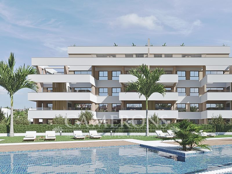 Improve your lifestyle and do not miss out in this brand new development located in Santa Rosalia lake resort!ENCINA 37 is a new community located in Santa Rosalia. The project includes 22 luxury apartments (one, two and three bedrooms), and 2 magnificent three-bedroom penthouses, all with underground parking and storage room included in the price. Third floor and penthouses benefit from direct views to the lake!Encina 37 also includes fully installed a/c, and under floor heating in the bathrooms.The community also enjoys communal areas with swimming pool and gardens.This paradise resort is a new concept to this area, built 100m from the beach lagoon to enjoy swimming and watersports surrounded by a white sandy beach.The end result will be a stunning five star development offering a choice of apartments and villas built by various property developers that have already bought land on the resort.The resort is situated between the Mar Menor golf resort and town of Los Alcázares.Los Alcazares is a coastal town which has some unique places of interest to offer everyone. The town centre is relatively spread out, and has an excellent selection of shops and eateries to suit everybody, as well as beach side bars and restaurants.Click Here to view 1 bed optionClick Here to view 2 bed option