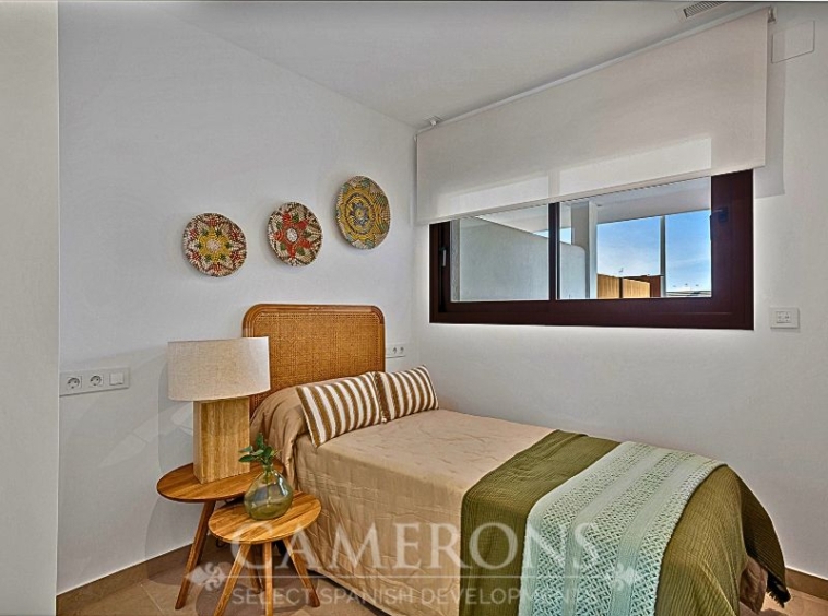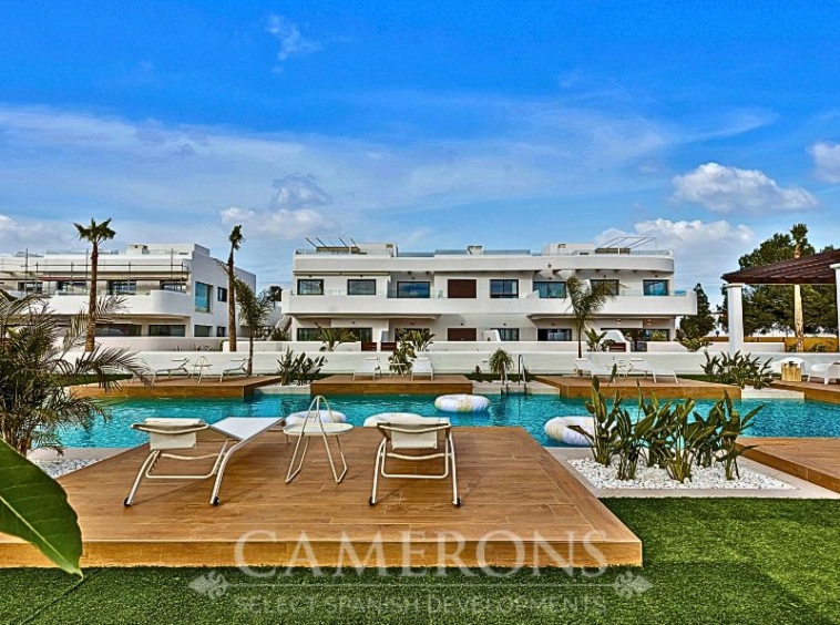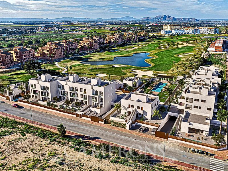 We are pleased to offer you this fantastic complex, L.A SUNSET, located in Los Alcazares, combining apartments and villas in a single project.The apartments share a carefully designed communal area, open to the sunset and the golf course.The villas stand on their own, with private pools and direct views over the golf course.The residential is composed of 46 apartments of 2 and 3 bedrooms and 8 villas, combining modern design, quality and functionality. The unbeatable location offers nice views to golf and the Mar Menor sea. Apartments: There are different options, some apartments are in a building of only two level boasting ground and top floor apartments others are, three buildings with three floors and a lift. All them nicely integrated with a lovely communal area with pool, to enjoy swimming and sunbathing.Located in an exceptional area on the Costa Cálida, with La Serena Golf Course at your doorstep and many others within less than 30 minutes. The town of Los Alcazares is a small coastal town with a great mix of locals and expats from all nationalities with a nice promenade along the beach by the Mar Menor, the biggest salt lake in Europe with 170km2 of surface and 5 islands. The climate conditions, warm water and the absence of currents and waves make the Mar Menor a special destination for enjoying bathing and all kinds of water sports.The area is connected through highway with the cities of Cartagena, Murcia and Alicante and the rest of the beaches of the Costa Cálida and the Costa Blanca. It’s only 30 minutes from Murcia airport and 55 min from Alicante airport.Click here for 2 bed ApartmentClick here for 3 bed Villa