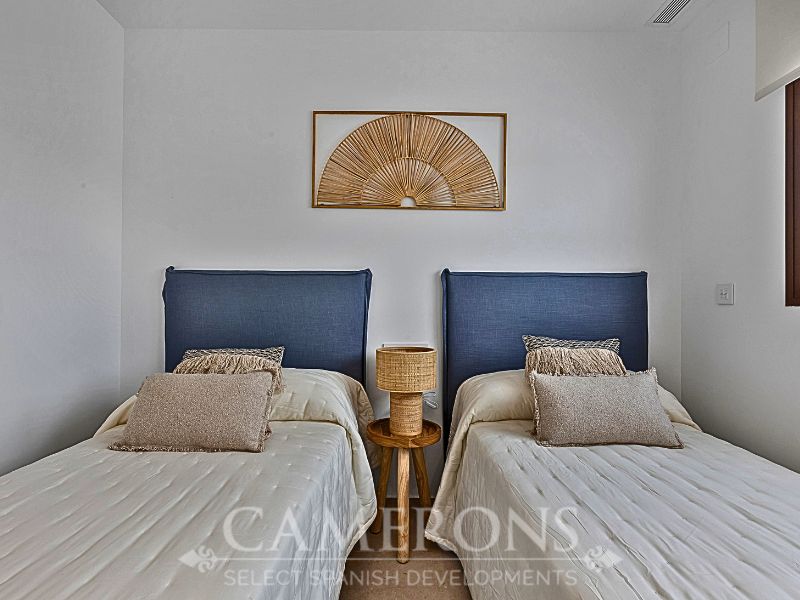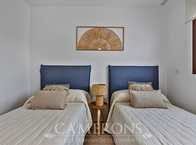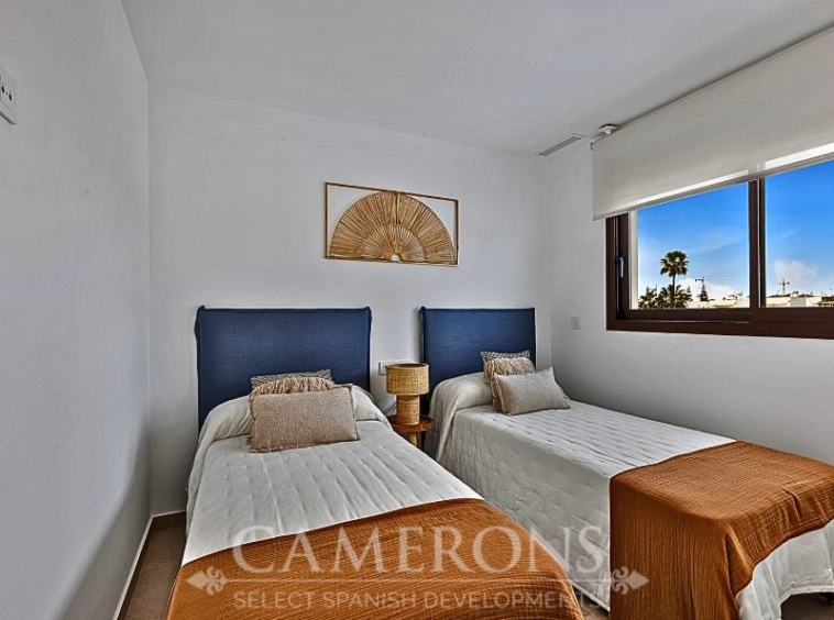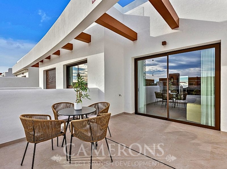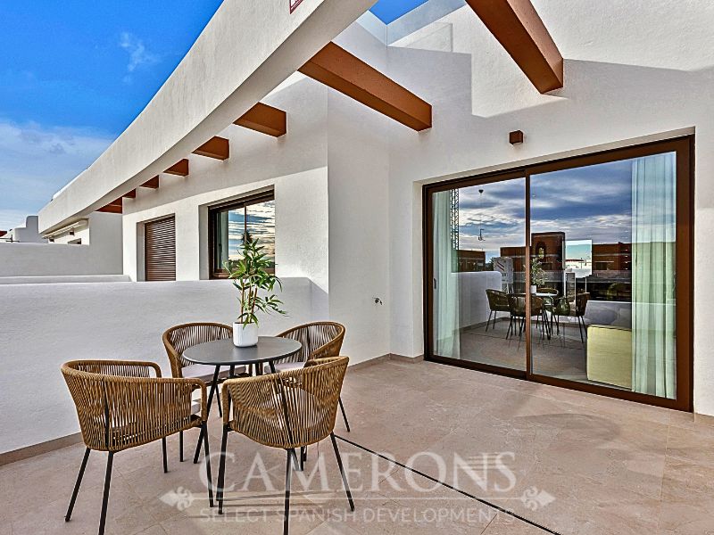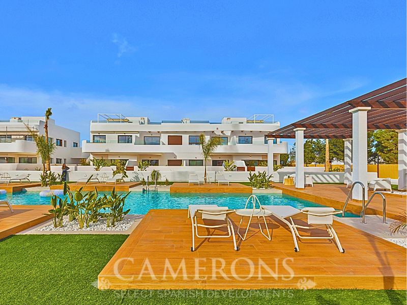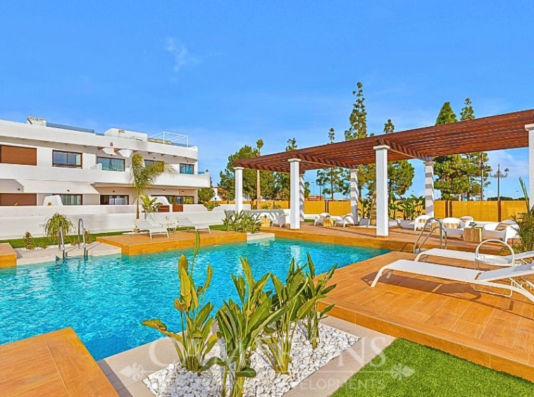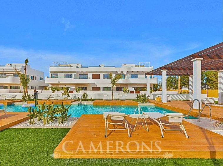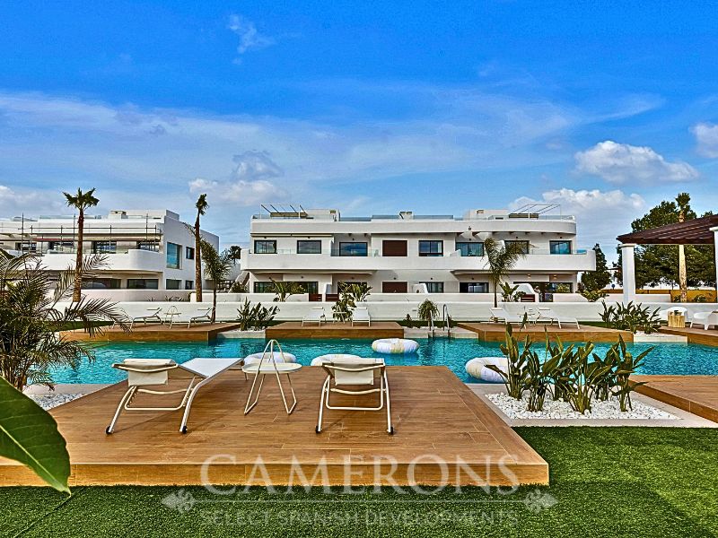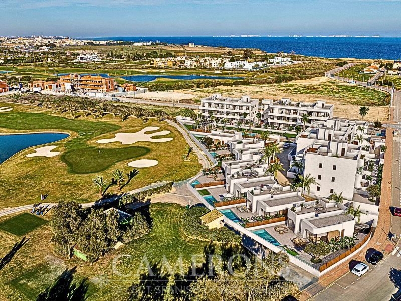 We are pleased to offer you this fantastic complex, L.A SUNSET, located in Los Alcazares, combining apartments and villas in a single project.The apartments share a carefully designed communal area, open to the sunset and the golf course.The villas stand on their own, with private pools and direct views over the golf course.The residential is composed of 46 apartments of 2 and 3 bedrooms and 8 villas, combining modern design, quality and functionality. The unbeatable location offers nice views to golf and the Mar Menor sea. Apartments: There are different options, some apartments are in a building of only two level boasting ground and top floor apartments others are, three buildings with three floors and a lift. All them nicely integrated with a lovely communal area with pool, to enjoy swimming and sunbathing.Located in an exceptional area on the Costa Cálida, with La Serena Golf Course at your doorstep and many others within less than 30 minutes. The town of Los Alcazares is a small coastal town with a great mix of locals and expats from all nationalities with a nice promenade along the beach by the Mar Menor, the biggest salt lake in Europe with 170km2 of surface and 5 islands. The climate conditions, warm water and the absence of currents and waves make the Mar Menor a special destination for enjoying bathing and all kinds of water sports.The area is connected through highway with the cities of Cartagena, Murcia and Alicante and the rest of the beaches of the Costa Cálida and the Costa Blanca. It’s only 30 minutes from Murcia airport and 55 min from Alicante airport.Click here for 3 bed ApartmentClick here for 3 bed Villa
