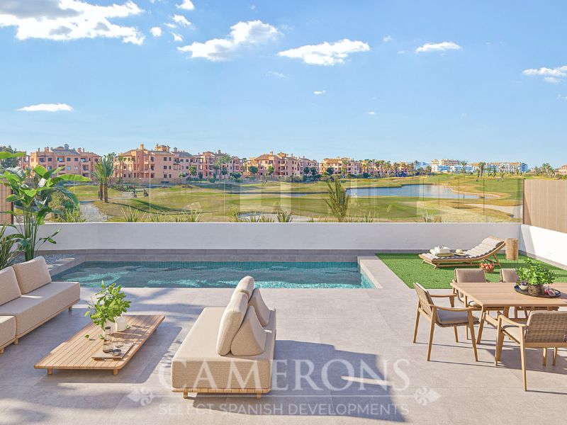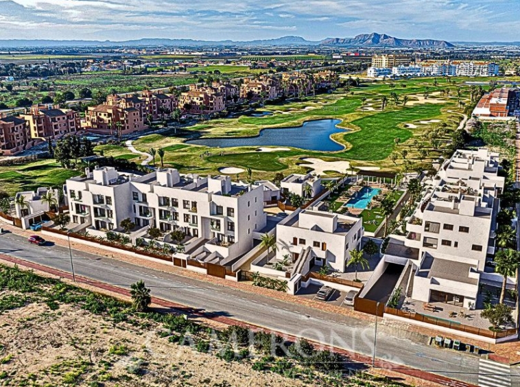 We are pleased to offer you this fantastic complex, L.A SUNSET, located in Los Alcazares, combining apartments and villas in a single project.The apartments share a carefully designed communal area, open to the sunset and the golf course.The villas stand on their own, with private pools and direct views over the golf course.The residential is composed of 46 apartments of 2 and 3 bedrooms and 8 villas, combining modern design, quality and functionality. The unbeatable location offers nice views to golf and the Mar Menor sea. Apartments: There are different options, some apartments are in a building of only two level boasting ground and top floor apartments others are, three buildings with three floors and a lift. All them nicely integrated with a lovely communal area with pool, to enjoy swimming and sunbathing.Located in an exceptional area on the Costa Cálida, with La Serena Golf Course at your doorstep and many others within less than 30 minutes. The town of Los Alcazares is a small coastal town with a great mix of locals and expats from all nationalities with a nice promenade along the beach by the Mar Menor, the biggest salt lake in Europe with 170km2 of surface and 5 islands. The climate conditions, warm water and the absence of currents and waves make the Mar Menor a special destination for enjoying bathing and all kinds of water sports.The area is connected through highway with the cities of Cartagena, Murcia and Alicante and the rest of the beaches of the Costa Cálida and the Costa Blanca. It’s only 30 minutes from Murcia airport and 55 min from Alicante airport.Click here for 2 bed ApartmentClick here for 3 bed Apartment