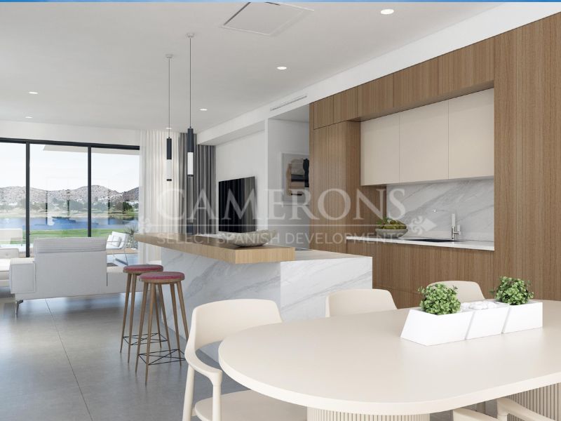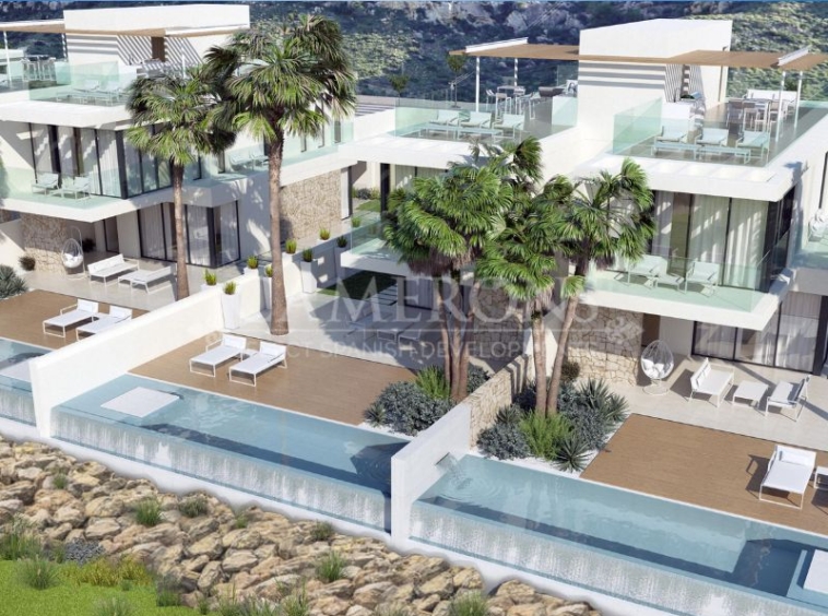 In Font del Llop Golf Resort you will find the home that best suits your pleasures and needs. Villas, townhouses and apartments with an avant-garde design perfectly adapted to the environment and natural atmosphere. The respect and conservation of the environment has led to the perfect integration of the project into the natural environment while pampering the aesthetics of the landscape while preserving the impact of its layouts.Our semi-detached Makalu villas consist of two terraced collective houses minimally attached with two floors, own parking space outside, private pool, inner courtyard, terrace, solarium and storage room.Homes aimed at the best orientation, with first line views to the golf course.They have large windows oriented and protected, allowing in winter that the sun warm and illuminated the interior of the houses. Strategic carpentry openings provide for through ventilation from facades, interior courtyards …A strongly vegetated environment through native species that, with the saving of water, will protect the bioclimatism, since its vegetal mass renews the air, generates cross ventilation and absorbs CO2 emissions.All homes are designed and equipped to meet high performance in terms of energy efficiency. Font del Llop is strategically located in the heart of the Province of Alicante. It is 10 minutes away from Alicante-Elche International Airport. The nearest train station is located in Alicante, 15 minutes away from the golf course. Moreover, a modern road network that connects it with the main cities of Spain.Font del LLop Golf Resort is located 20 minutes away from the wonderful virgin beaches of the Mediterranean Sea. Therefore, the temperature is perfect (18º on average) to play golf and practice other outdoor sports, having 300 sunny days a year. The golf course also enjoys 25 km of free terrain for hiking and mountain biking.Click here to view a video of the property