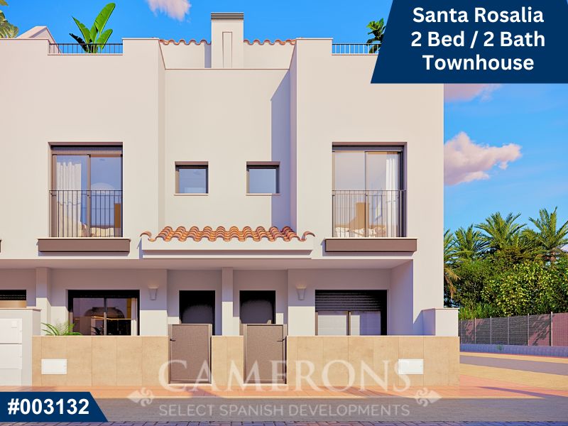 New 2 and 3 bed townhouses with communal pool in the town of Santa Rosalia, in an excellent location, just 5km from the beaches of the Mar Menor and only 1km from an 18 hole golf course.Modern properties with 2 and 3 bedrooms and 2 bathrooms, communal pool complete with private roof solarium with summer kitchen included. The end result will be a stunning development in an area that is situated between the town of Torre Pacheco and Los Alcázares. Torre Pacheco is a large inland town which has some unique places of interest to offer everyone. The town centre is relatively spread out, and has a good selection of shops and eateries. The best day to visit is on Saturday morning when the lively street market adds to the atmosphere.Click here to view 3 bed option