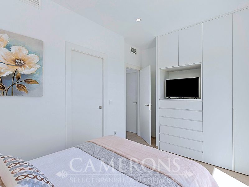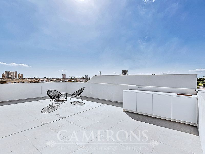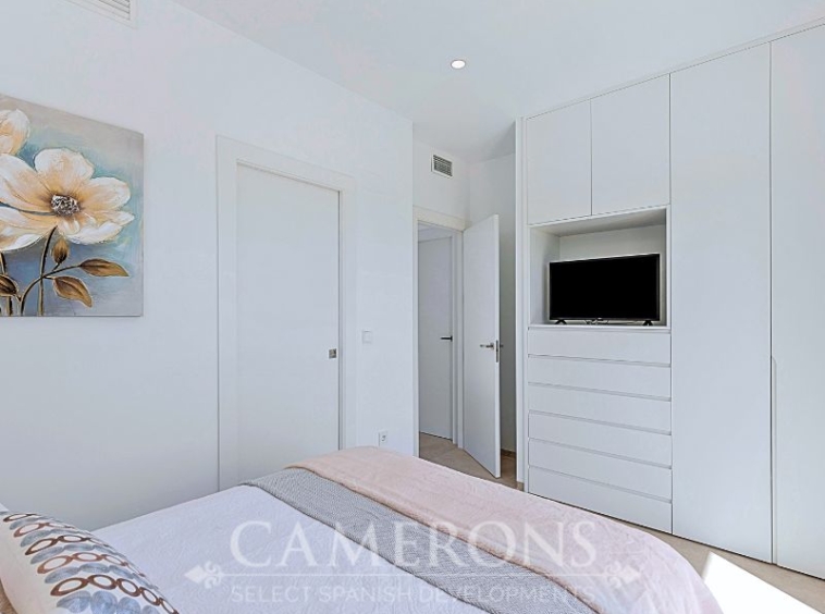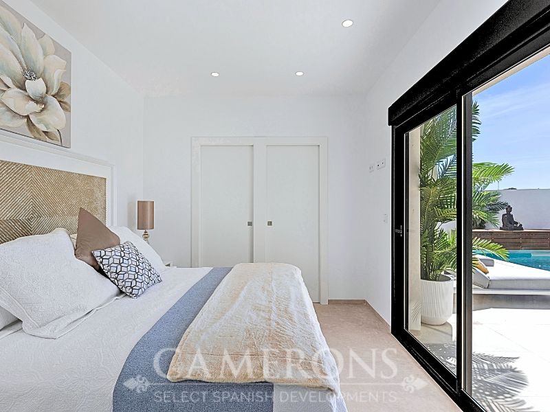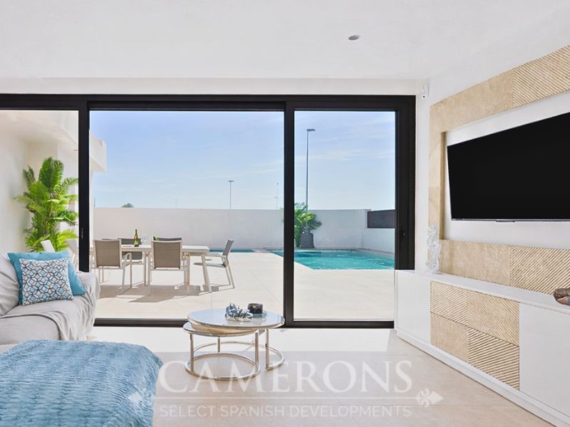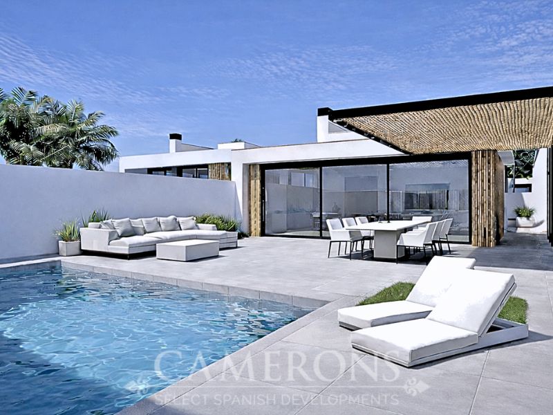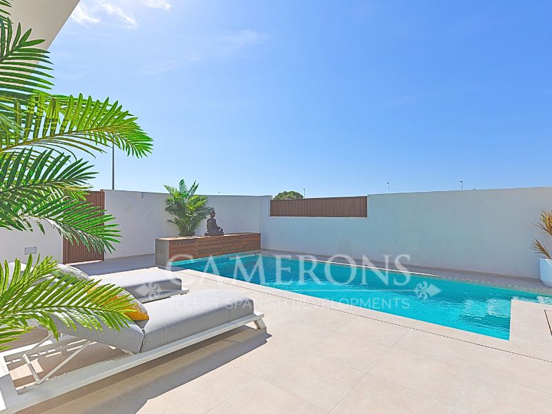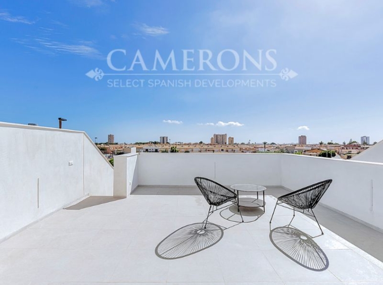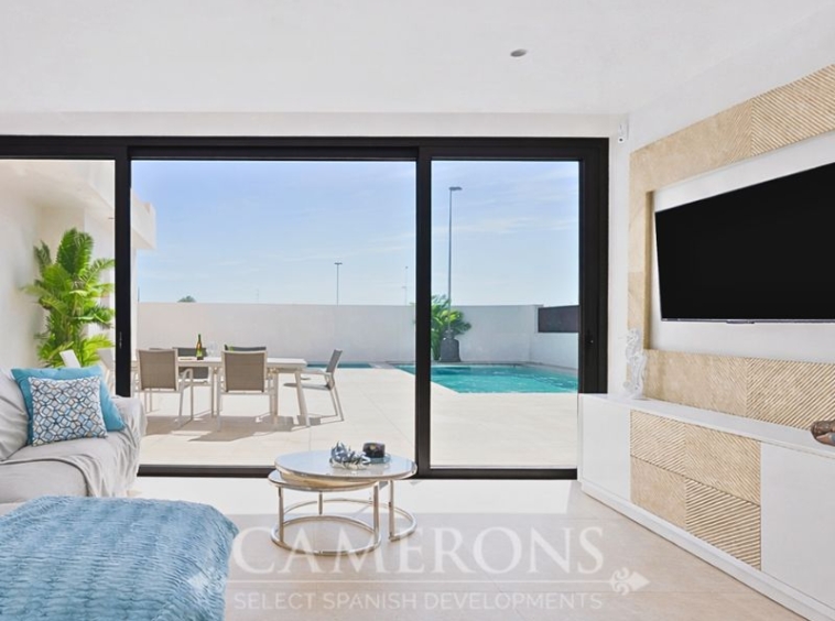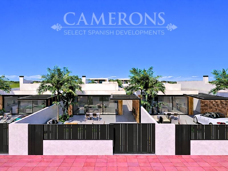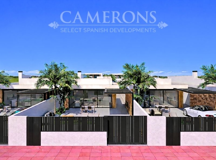 This is a newly released promotion of 3 bed, 3 bath villas on two levels or 2 and 3 bed, 2 bath villas, on one level. The properties all come with private pools. These stunning properties are available on an elevated position at La Serena Golf Resort enjoying nice views over the golf course and sea views in the distance.La Serena Golf in Los Alcazares Murcia has an ideal location only 1km to the beach of the Mar Menor (Costa Cálida) and close to the cities of Cartagena and Murcia.It is also close to the main square of Los Alcazares where you can find a number of international restaurants and bars, and all the amenities you may need. The new international Murcia airport is just 30 minutes away and Alicante airport around 60 minutes away.Click here to view 3 bed option