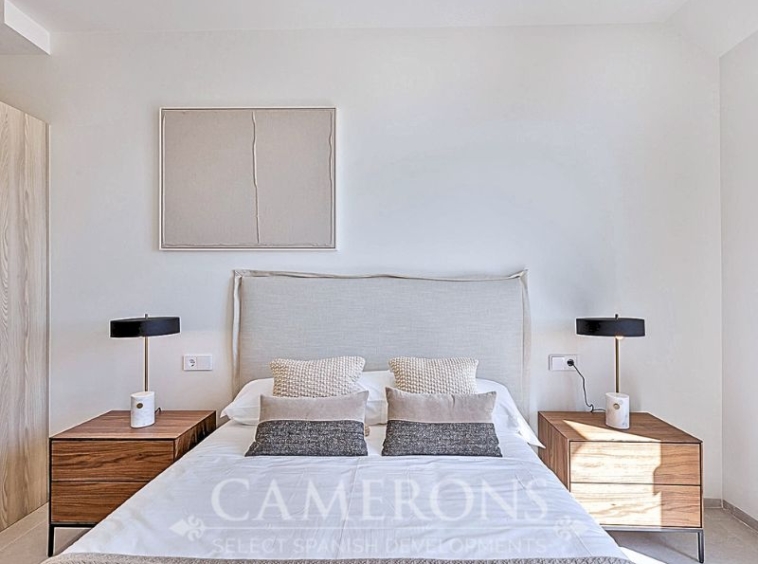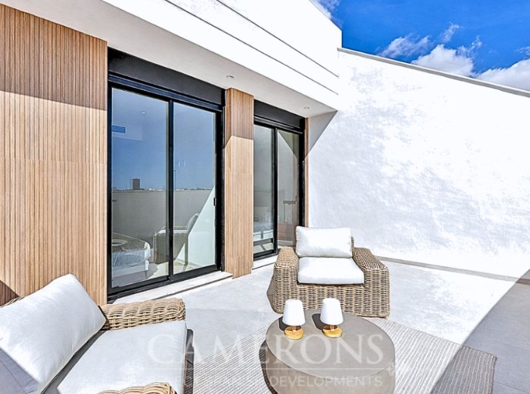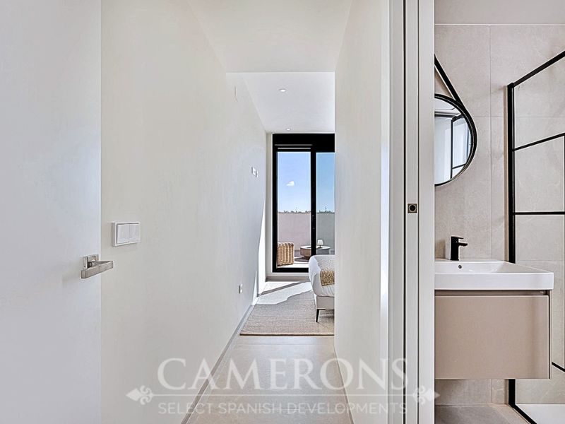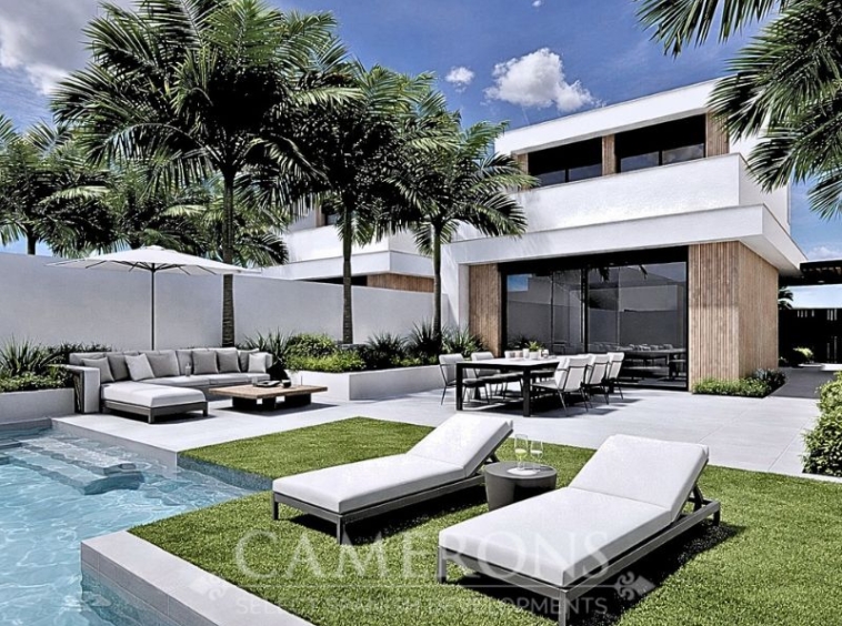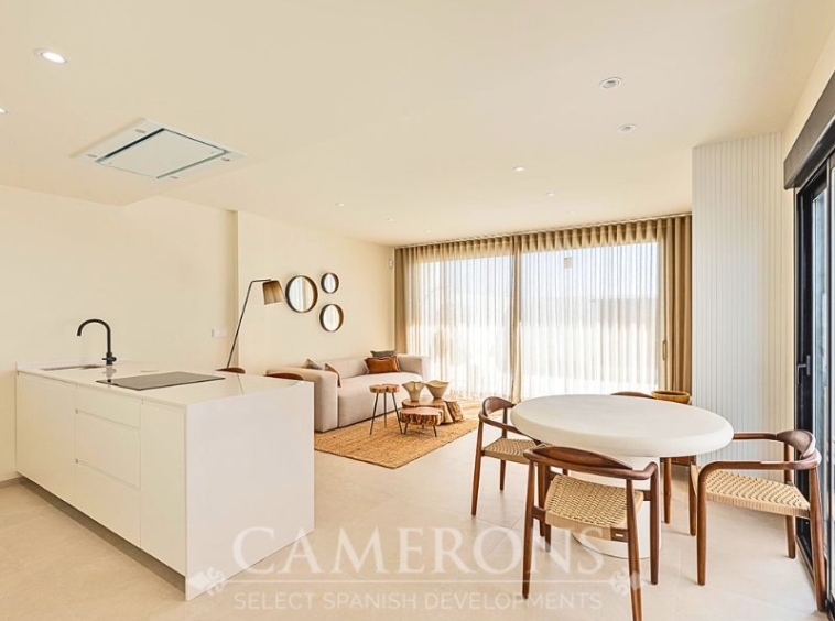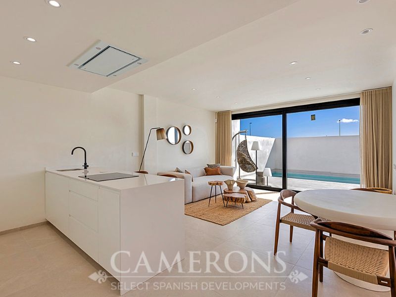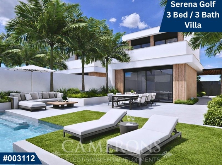 This is a newly released promotion of 3 bed, 3 bath villas on two levels or 2 and 3 bed, 2 bath villas, on one level. The properties all come with private pools. These stunning properties are available on an elevated position at La Serena Golf Resort enjoying nice views over the golf course and sea views in the distance.La Serena Golf in Los Alcazares Murcia has an ideal location only 1km to the beach of the Mar Menor (Costa Cálida) and close to the cities of Cartagena and Murcia.It is also close to the main square of Los Alcazares where you can find a number of international restaurants and bars, and all the amenities you may need. The new international Murcia airport is just 30 minutes away and Alicante airport around 60 minutes away.