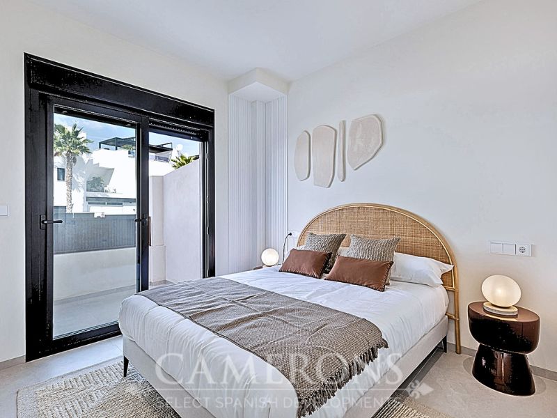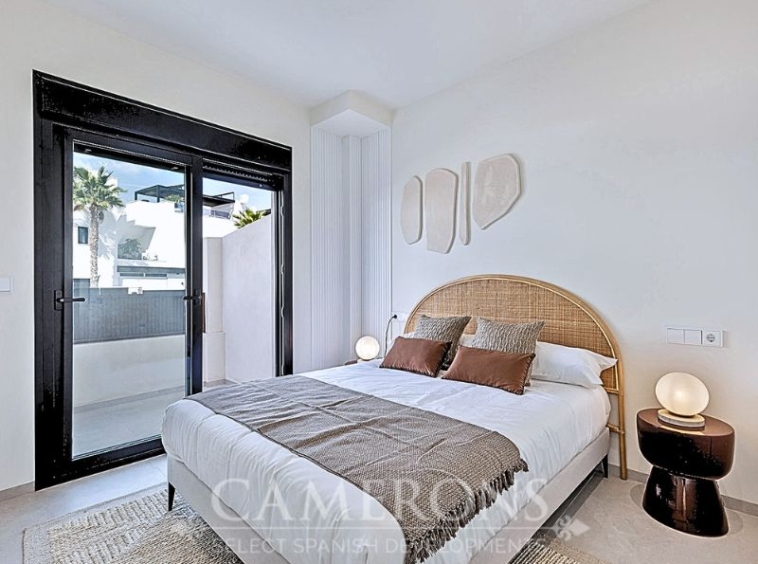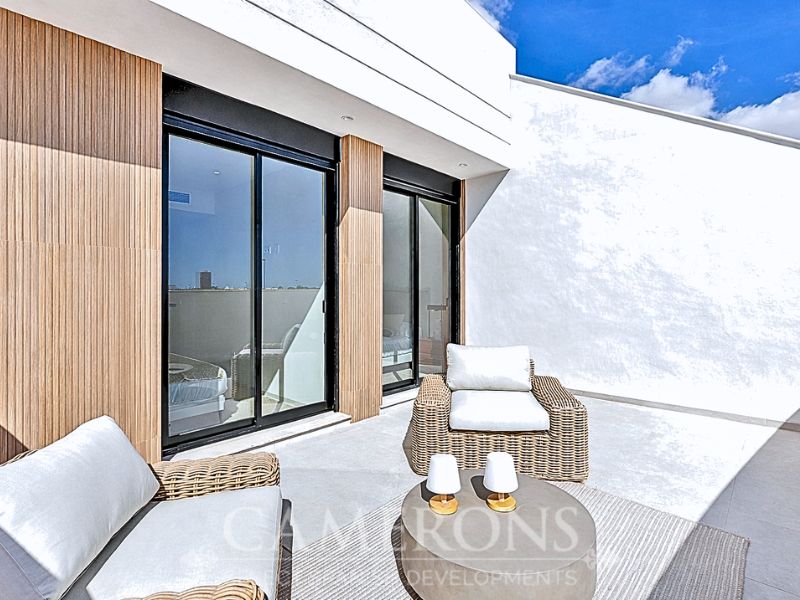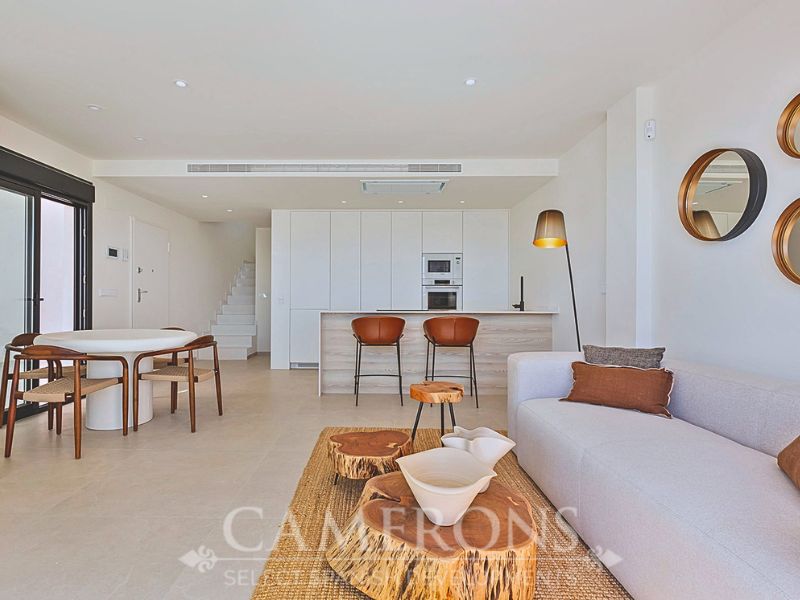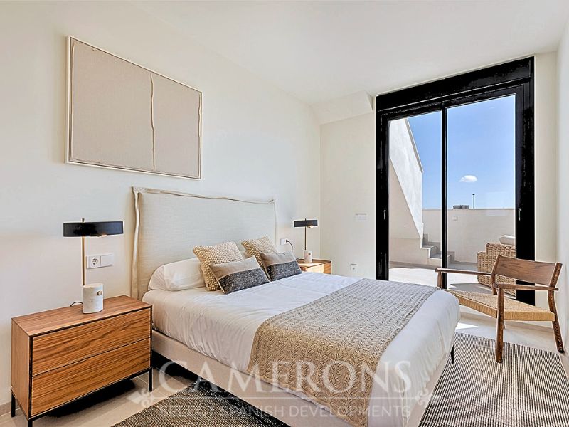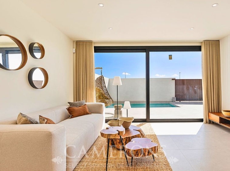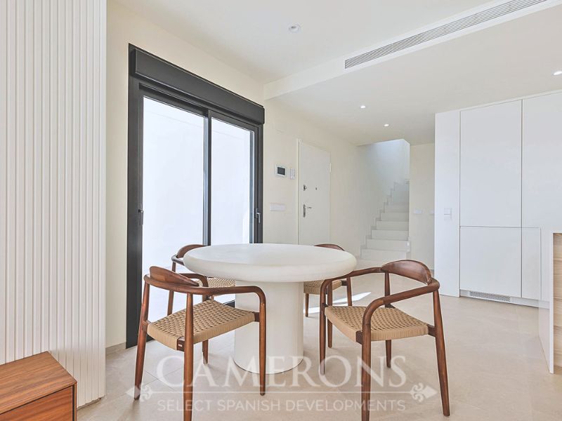 This is a newly released promotion of 3 bed, 3 bath villas on two levels or 2 and 3 bed, 2 bath villas, on one level. The properties all come with private pools. These stunning properties are available on an elevated position at La Serena Golf Resort enjoying nice views over the golf course and sea views in the distance.La Serena Golf in Los Alcazares Murcia has an ideal location only 1km to the beach of the Mar Menor (Costa Cálida) and close to the cities of Cartagena and Murcia.It is also close to the main square of Los Alcazares where you can find a number of international restaurants and bars, and all the amenities you may need. The new international Murcia airport is just 30 minutes away and Alicante airport around 60 minutes away.