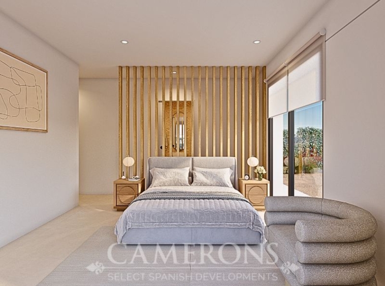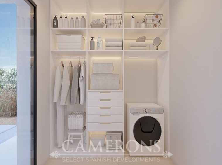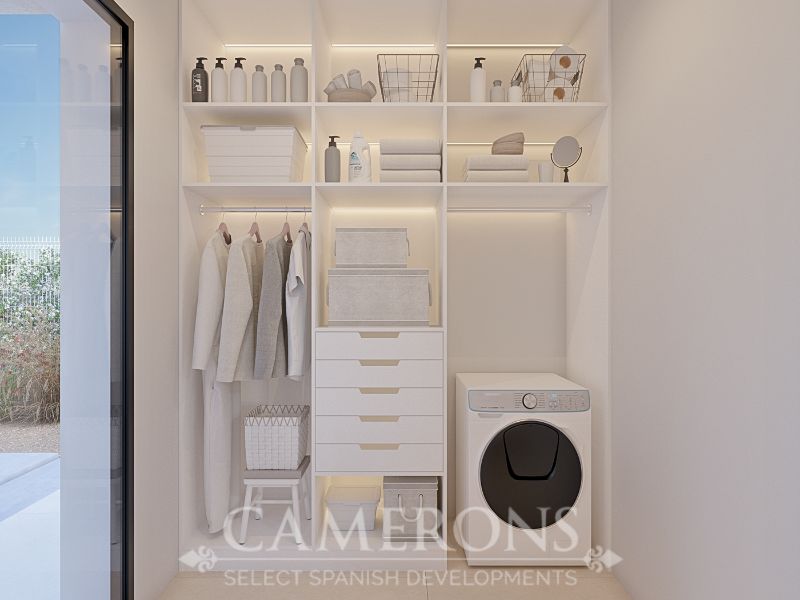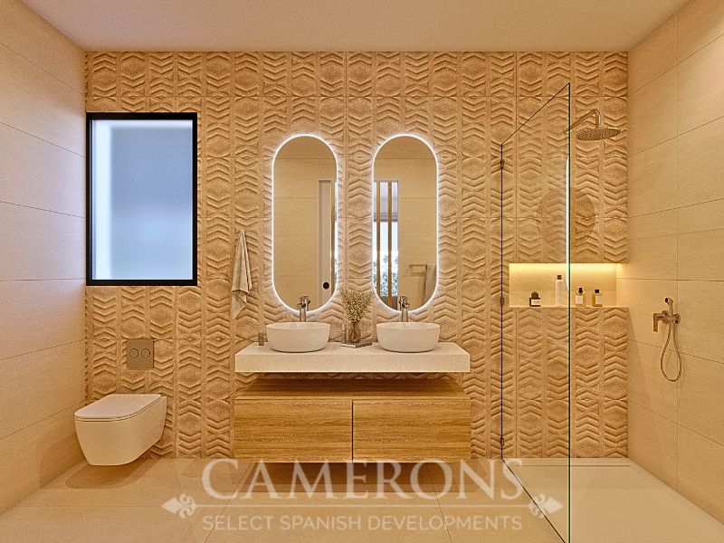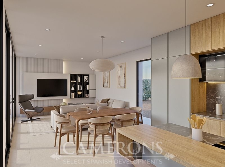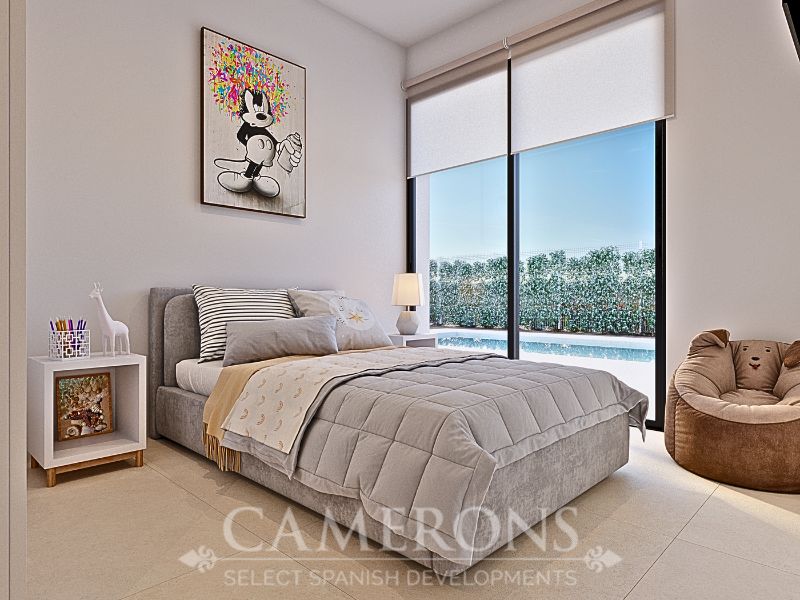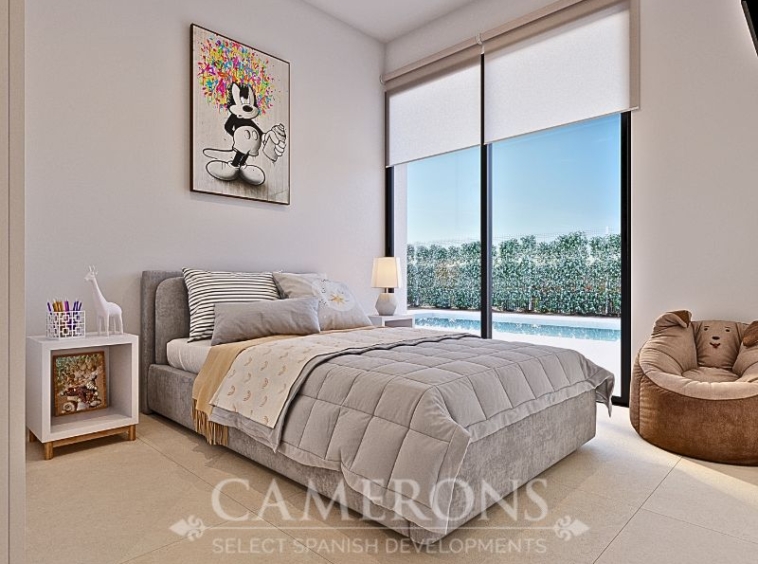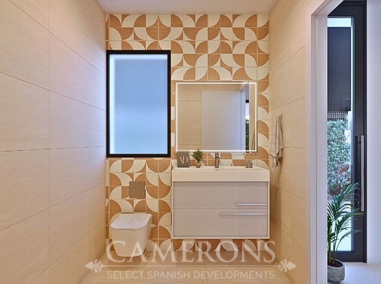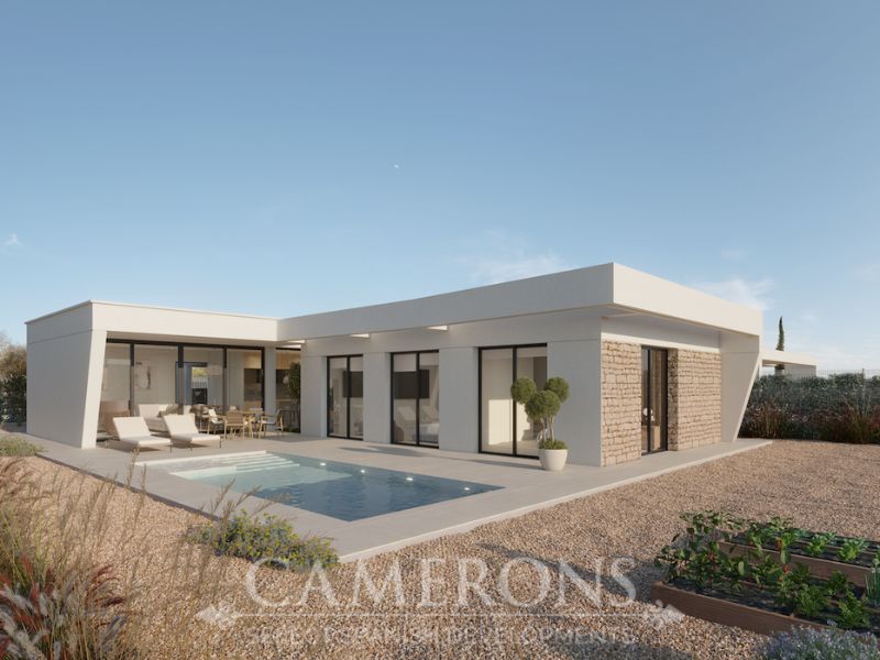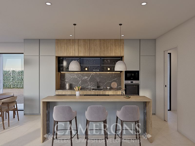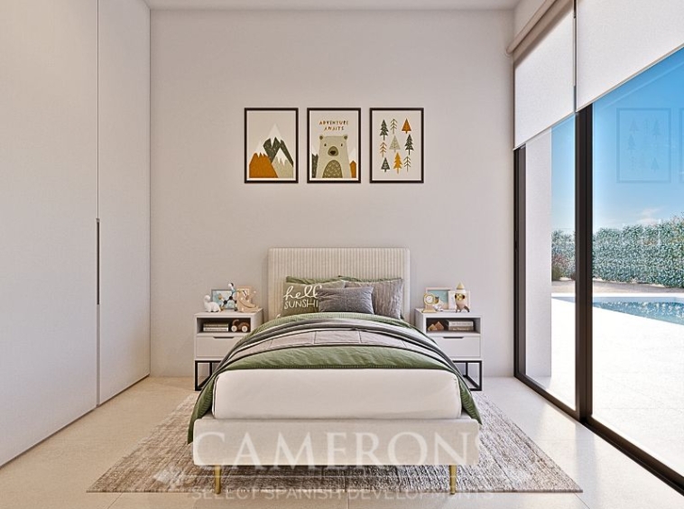 New Project of 3 bed villas, all with 2 bathrooms, either all on one level villa or two stories, with plots up to 1000m2.Complete with private pool and solarium and optional basement. Click here to view Villa Melissa Click here to view Villa Stella Click here to view Villa Libella Open plan lounge and kitchen, with a dining area. The double windows in the lounge open onto a terrace and pool area. These properties bring the focus on the use of long-lasting materials and the highest quality finish. Hacienda del Alamo Golf resort is an exclusive residential area of Murcia. The internationally renowned resort has a magnificent club house, as well as a hotel and restaurant. The beautiful sandy beaches of Mazarron are only 15 minutes away by car. The area is well connected to airports and services.