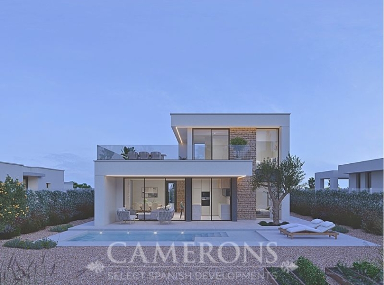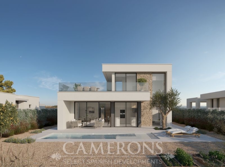 New Project of 3 bed villas, all with 2 bathrooms, either all on one level villa or two stories, with plots up to 1000m2.Complete with private pool and solarium and optional basement.Click here to view Villa MelissaClick here to view Villa ColiaClick here to view Villa LibellaOpen plan lounge and kitchen, with a dining area. The double windows in the lounge open onto a terrace and pool area.These properties bring the focus on the use of long-lasting materials and the highest quality finish.Hacienda del Alamo Golf resort is an exclusive residential area of Murcia. The internationally renowned resort has a magnificent club house, as well as a hotel and restaurant.The beautiful sandy beaches of Mazarron are only 15 minutes away by car. The area is well connected to airports and services.